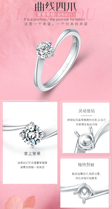 【周大福】周大福守护一生 裸钻四爪铂金K金钻戒戒托 女款戒指