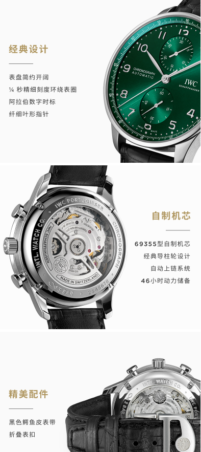 【IWC万国】IWC葡萄牙系列计时腕表绿海王线上专享万国手表男