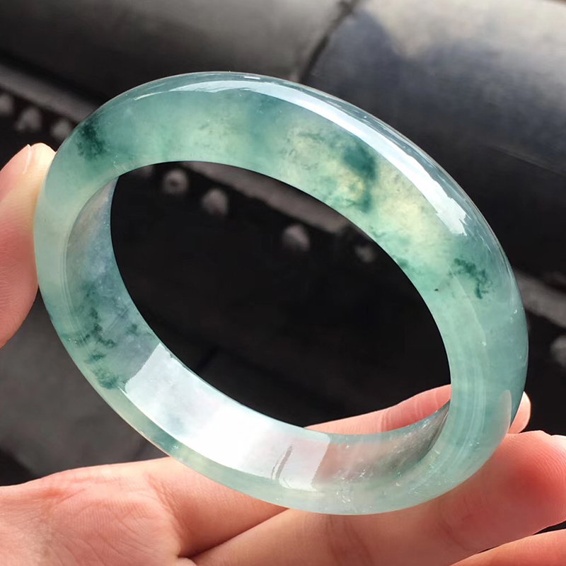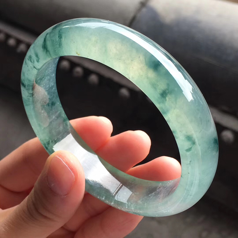 【果敢翡翠】w0819-12果敢翡翠 55.6冰飘花翡翠手镯玉手镯缅甸玉石手镯